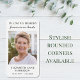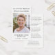 Einfache elegante Gebetskarte für die Gedenkstätte und den Bestattungsservice eines geliebten Menschen. Die Vorderseite zeigt "In Loving Memory Of" und "ewig in unseren Herzen" in einer Mischung aus Typografie und Schrift. Personalisieren Sie mit Foto, Name und Geburtsdatum und Sterbedatum. Auf der Rückseite befindet sich eine lange inspirierende Passage ("Fülle nicht dein Herz mit Schmerz") und eine kürzere Nachricht, oder stelle dir eigene Nachrichten oder biblische Verse zur Verfügung.