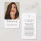 Abmessungen der Visitenkarte: 3,5" x 2,0". Einfache Beerdigungskarte. Fügen Sie Ihr Lieblings-Foto und Ihre Auswahl an Gebet oder Gedicht auf der Rückseite der Karte hinzu. Einfach anzupassen. Unser herzliches Beileid an Sie und die Familie während dieser schwierigen Zeit.