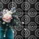 Elegante Keramik Fliesen-Design mit einem Muster aus weiß umrissenen geometrischen Formen auf einem schwarzen Hintergrund.