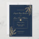 Minimalistische geometrische marineblaue und goldene Blumen-Hochzeitseinladung ist perfekt für jede klassische und raffinierte Zeremonie. Dieses elegante, goldfarbene, florale Rahmen, das mädchenhafte Design, ist perfekt für das trendige und stilvolle Paar. Passen Sie dieses Design mit Ihren eigenen Nachrichten und personalisierten Informationen an. Alle Designs sind gedruckt.