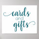 Luxuriöse türkisblaue Aqua-Dusche, Aquamarine, Meeresfrüchte und weiße horizontale "Karten & Geschenke" Dusche, Party oder Empfang Tafel mit einem lustigen, lässigen handgeschriebenen Skript. Das klassische Design beinhaltet ein modernes, handhabbares Offerttipografie-Overlay. Der hübsche Schriftart mit einer individuell anpassbaren Hintergrundfarbe macht es einfach, sich jedem Thema anzupassen. Für andere Farben oder passende Produkte, besuchen Sie bitte den JustFharryn Zazzle Store, oder kontaktieren Sie den Designer, c/o fharryn@yahoo.com Alle Rechte vorbehalten. #zazzlemade