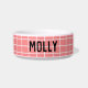 Diese Hundeschüssel hat ein modernes, geometrisches, gitterartiges Muster, ergänzt durch ein mädchenhaftes Korallenrosa. Vollständig anpassbares und niedliches Zubehör für Haustiere. Ideal für den Tierbesitzer in Ihrem Leben, Personalisiert mit Namen und Ihr Haustier kann zusätzliche passende Accessoires wie Halsbänder und Leinen haben.