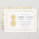Simple Gold Ananas Speichern Sie die Date Cards, Teil unserer Sammlung von Hochzeitsartikeln für Ananas. Mit Ananas-Muster auf der Rückseite mit Imitaten goldenen Folienakzenten vorne.