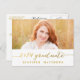 Moderne Postkarte mit Foto, die Ihre Familie und Freunde zur Abschlussfeier Ihrer Tochter einlädt. Einfache Gold | Einladung zur Graduationspartei für 2014. Design von Elke Clarke © Besuchen Sie unseren Shop www.zazzle.com/monogramgallery* für weitere Designs und Stile. Fügen Sie Ihr eigenes Foto und Text hinzu. Ein einfaches Texturelement aus Goldfolie, handschriftlich, Schriftart überlagert (Printeffekt) mit den Worten "2014 Graduate". Ersetzen Sie das Beispiel-Foto durch das eigene. Weiß und Gold. Andere Stile und Farben verfügbar.