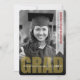 Einfache Gold GRAD fett Overlay, Moderne Foto Abschluss Ankündigung / Party Einladung Card. Das ist ein zweiseitiges Design. Die Angaben zum Party befinden sich auf der Rückseite der Karte. Alle Designelemente sind beweglich und editierbar. Der Hintergrund der Unterschicht kann in eine beliebige Farbe geändert werden. Entworfen / Original-Kunstwerk von fat*fa*tin. Einfach mit eigener Textnachricht, Name, Foto oder Bild personalisieren. Weitere Schriftart-Stile, Foto-Filter und Editing-Features sind auf der 'Edit Design'-Seite verfügbar. — https://www.zazzle.com/collections/graduation_party_supplies-119447822100562139 — https://www.zazzle.com/collections/personalized_graduation_accessories_custom_gifts-119420215306879748 — https://www.zazzle.com/collections/graduation_announcement_cards-119240297798176351 — www.zazzle.com/collections/graduation_party_invitations-119988321070623801 — www.zazzle.com/collections/graduation_thank_you_cards-119015369615228414 — www.zazzle.com/fat_fa_tin — www.zazzle.com/color_therapy www.zazzle.com/fatfatin_blue_knot www.zazzle.com/fatfatin_red_knot www.zazzle.com/fatfatin_mini_me www.zazzle.com/fatfatin_box www.zazzle.com/fatfatin_design www.zazzle.com/fatfatin_ink