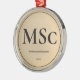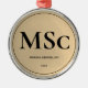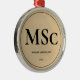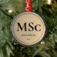 Ein Ornament für einen MSc-Absolvent mit einem goldenen Ton (ohne Folie) und schwarzem Farbschema. Es zeigt den Grad, den Namen und das Jahr. Einfach anpassen Sie dieses Ornament, fügen Sie es in Ihren Warenkorb, und haben Sie einen Vorzug dieser großen Leistung. Elegante, einfache Gold MSc Abschluss Metal Ornament Holidayday-Design | ©Melissa Patton - Designer