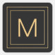 Einfache Gold | Schwarz | Monogramm Quadratischer Aufkleber