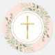 Einfache goldene Cross Wasserfarbengrün Rosa Runder Aufkleber