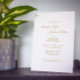 Diese schlichte Goldkalligrafie-Hochzeitsempfehlung verleiht einem minimalistischen und traditionelleren oder formalen Empfang ein elegantes, aber modernes Ambiente. Die lässige Kalligraphie ermöglicht ein antikes Ambiente, während das klassische neutrale Design mit jedem einzigartigen Aspekt Ihrer Ehefeier kombiniert werden kann.