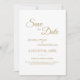 Diese einfache Goldkalligraphie bringt Save the Date ein elegantes, aber modernes Ambiente zu einer minimalistischen und traditionelleren oder formalen Hochzeit. Die lässige Kalligraphie ermöglicht ein antikes Ambiente, während das klassische neutrale Design mit jedem einzigartigen Aspekt Ihrer Ehefeier kombiniert werden kann.