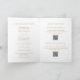 Elegant in einer gefalteten Hochzeitseinladung mit einem einfachen und minimalen Imitat Gold-Design. Klassisches Layout mit Ihren Namen in großen Schriften für eine moderne Drehung dieser traditionellen Stileinladung. Die rechte Innenseite hat zwei QR Codes. Fügen Sie einfach Ihre URL der Vorlage hinzu und ein QR-Code wird generiert. Wenn Sie es vorziehen, können Sie die QR Codes im Entwurfsbearbeitungsprogramm entfernen. Diese Einladung ist perfekt für eine feierliche Hochzeit.