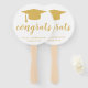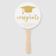 Moderner Abschluss-Handfan mit Gradmütze und "Glückwünschen" in einer eleganten Handschrift-Typografie zusammen mit dem Namen und dem Klassenjahr des Absolventen in Gold auf einem weißen Hintergrund. Diese einfachen und hübschen Handfans sind perfekt für einen Absolventen eines Mädchens und sind ein guter Weg, um Ihrer Abschlussfeier eine persönliche Touch hinzuzufügen.