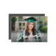 Mit einem einfachen Skript "graduate" in einem modernen handgeschriebenen Stil, ist diese Zwei-Foto-Abschluss-Ankündigung und Einladung der perfekte Weg, um Ihren Abschluss zu feiern. Mit einem horizontalen Foto auf der Vorderseite mit weißem Schriftzeichen hat dieses Design auch Platz auf dem neutralen Schiefergrau zurück, um ein zweites Foto ein Graduierungsparty Details. Es ist ein stilvolles Abschluss-Design perfekt für Mädchen und Typ und funktioniert gut für Absolventen der High School Abschluss und Uni. Dieses Party von Lea Delaveris Design ist auch als digitaler Download erhältlich. Finden Sie weitere Stile in der Auflistung.