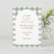 Einfache grüne Gingham Baby Dusche Einladung für eine geschlechtsneutrale Veranstaltung.