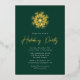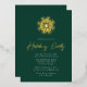 Moderne Fest-Einladungen mit einer goldenen Schneeflocke aus Goldfolie, ganz oben im Design, mit festlichem grünem Hintergrund. "Holiday Party" wird in einem handgeschriebenen Goldfolienskript angezeigt. Personalisieren Sie die Einladungen zu den Schneeflocken mit Ihren Party-Details in weißer Schrift.