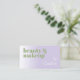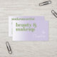 Schöne elegante minimalistische Stil künstlerische Make-Artist Visitenkarte. Zeitgenössische, helle lavender lila violette Visitenkarte mit modernem Retro und minimalistisch weiser, grüner und eleganter weißer Schriftart. Klicken Sie auf "Personalisieren", um die Vorlage zu finden, die für Ihren individuellen Firmennamen, Ihre Berufstätigkeit und Ihre Kontaktinformationen, Text und QR-Code Ihrer Wahl geeignet ist. Dieses besondere hübsche und einzigartige Design wurde für diejenigen, die anspruchsvolle klassische Starkdesigns mögen, geschaffen.