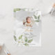 Einfache grüne Blätter mit Foto Taufe Einladung