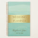 Einfache, elegante Aquarellmalz-Grüne Hochzeitsplanerin mit gelben goldenen Details und Pärchennamen für moderne Brautpaare.