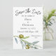 Das einfache grüne Olive Branch Watercolor Save the Date ist eine wunderschön gestaltete Einladung, inspiriert durch den rustikalen Charme der italienischen Landschaft. Die Aquarellkunst ist mit einem Olivenzweig mit Blätter in sanften Farbtönen von blauen Grüntönen und grünen Oliven gestaltet. Das ist Save the Date ideal für diejenigen, die eine italienische Themenhochzeit oder eine Traumhochzeit in Italien planen. Es kann auch eine stilvolle Ergänzung zu jeder Sommerhochzeit im Freien sein. Set den Ton für Ihren besonderen Tag mit diesem eleganten und erfrischenden Design, das die Schönheit der Natur und Romantik einfängt.
