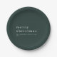 Einfache grüne weiße Typografie Frohe Weihnachten Pappteller