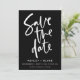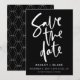 Schwarz-Weiß-Moderne Schrift Einfache handgeschriebene Kalligrafie Hochzeit Sichern Sie die Datumskarten Maßgeschneidert mit Ihrem Text, um es einzigartig Ihr Kommen mit geometrischen Mustern auf der Rückseite Sie können vollständig entfernen oder uns gefragt, Muster zu ändern oder zu entfernen kostenlos