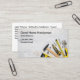 Handyman Zuhause betreut neue, editierbare Visitenkarten im klassischen Visitenkartenstil mit verschiedenen Zuhause-Wartungstools im Hintergrund und einer Liste Ihrer Dienste auf der gedreht Seite.