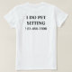 Einfache Schreibtischlampen mit den Worten, die ich als Haustier mache, sitzen in fett gedruckten Buchstaben und die Kontaktnummer, die auffällig ist, sodass es leicht zu merken ist. Entworfen als Shirt für jemanden, der sich um Haustiere kümmert, die von Ihnen oder Ihrer Familie und Ihren Freunden getragen werden können, um Ihren Namen dort aus einem Budget zu bekommen.
