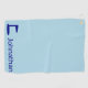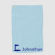 Dieses hellblaue Golfhandtuch hat dunkelblauen Text. Sie können den Text ändern, um den richtigen Namen anzuzeigen. Ein Bild der Golfflagge befindet sich neben dem Namen.