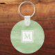 Ein schlichter, subtiler Marmor-Schlüsselanhänger in hellgrün mit einem modernen Abzeichen mit weißem Quadrat, den Sie durch das Hinzufügen Ihres mit Monogramm Initialen personalisieren können. Dies ist Teil der Nile Green Subtle Marble Monogram Collection.