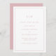 Einfache, rosafarbene Rose-Save the Date-Karte mit modernem und dennoch elegantem Design, oben mit zwei Buchstaben-Monogramm und Ihren Hochzeitsdetails inmitten einer dünnen Grenze. Die Schriftart und Hintergrundfarben können beliebig verändert werden. Ein elegantes und stilvolles Design, das sich ideal für ein minimalistisches Paar eignet.