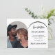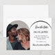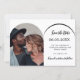 Ein Foto Save the Date Karte für Ihre Hochzeit. vorne: Fügen Sie Ihr eigenes Foto in vertikaler Größe in den Rahmen des Fotos ein. Ein schick weißer Hintergrund, schwarzer Text. Vorlagen für Namen und Datum. Der Name und der Text: Save the Date sind mit einem modernen handgeschriebenen Stilskript geschrieben. Zurück: Sie können mehr Text hinzufügen, wenn Sie gewollt haben. Gehen Sie in das Design-Tool und fügen Sie auf die hintere Ebene.