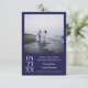 Diese Save the Date Karte ist modern, minimalistisch und einfach, aber elegant. Es verfügt über ein quadratisches Foto auf einem marineblauen Hintergrund mit einem künstlerisch in vertikalen Zahlen dargestellten Hochzeitstermin. Eine tolle Art, um Ihre Freunde und Familie lassen, wissen, ihre Kalender für Ihre kommende Hochzeit zu markieren.