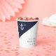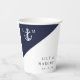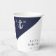Diese marineblauen und weißen nautischen minimalistischen, eleganten, mit Monogramm Hochzeitspapiertassen können mit Ihren Informationen in der modernen Typografie personalisiert werden. Entwickelt von Thisisnotme©