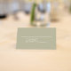 Dieses Design verfügt über einen Hochzeitssitzplatz für Platzkarten mit minimalistischem, elegantem Stil, einem knusprigen Tischnamen, einer schlichten, grün und solide Farbe, mit dem stylischen Kalligrafieschrift "Table"
