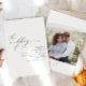 Dieses elegante, moderne Foto-Hochzeitsangebot besticht durch Ihr Foto auf der Rückseite und ein elegantes Vintages Drehbuch auf der Vorderseite. Es ist einzigartig und elegant.