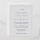 Einfache Hochzeitseinladung mit modernem und elegantem Design mit zwei Buchstaben-Monogramm oben und Ihren Details umgeben von einer dünnen Grenze. Dieses Design ist mit echter Silberfolie auf einem hellgrauen Hintergrund bedruckt. Ein elegantes und stilvolles Design, das sich ideal für ein minimalistisches Paar eignet.