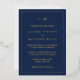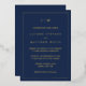 Einfache Hochzeitseinladung mit modernem und elegantem Design mit zwei Buchstaben-Monogramm oben und Ihren Details umgeben von einer dünnen Grenze. Dieses Design ist mit echter Goldfolie auf einem marineblau-Hintergrund bedruckt. Ein elegantes und stilvolles Design, das sich ideal für ein minimalistisches Paar eignet.