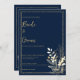 Dieses wunderschöne Hochzeitsdesign besticht durch hübsche, einfache, schicke Marineblau- und Goldblüteneinladungen, die sich perfekt für jede stilvolle und anspruchsvolle Zeremonie eignen. Dieses exquisite Gold Glitzer Blume Design ist ideal für das moderne und stilvolle Paar. Passen Sie dieses Design mit Ihrer Nachricht und personalisierten Informationen an. Alle Designs sind gedruckt.