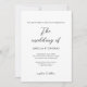 Diese Hochzeitseinladung hat ein einfaches und elegantes Design mit weißem Hintergrund und schwarzem Text. Es kombiniert einen anmutigen Skript-Schriftart mit einer sauberen Serif-Schrift und schafft so ein modernes, aber zeitloses Aussehen. Die Einrichtung ist gepflegt und minimalistisch, was dem Hotel ein elegantes und romantisches Ambiente verleiht.