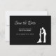 Eine schlichte Schwarz-Weiß-Hochzeit spart dem modernen Ehepaar mit einer Silhouette Braut und Bräutigam das Datum. Persönlich gestalten, indem Sie Ihre Hochzeitsdetails hinzufügen.
