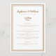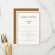 Das einfache, minimalistische und elegante Hochzeitsmenü besticht durch ein zeitgemäßes Design mit einem doppelten Rahmen in rustikalem Braun auf einem knusprigen weißen Hintergrund. Traditionelle Formulierungen bieten zeitlose, aber moderne Eleganz. Personalisieren Sie das Hochzeitsdesign mit Ihren Menüdetails in brauner Schrift und Schrift. Die Rückseite der Karte passt gut in Vollbraun.