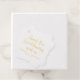 Einfache, aber moderne Gastgeschenk Hochzeit-Tags. Der Tag ist mit Goldfolienskripten mit einer kurzen Dankeschön versehen und leicht mit dem Namen und dem Hochzeitstag der Braut und des Bräutigams personalisiert. Einfach auf die Bedürfnisse von Gesprächspartnern oder Brautpartys zugeschnitten.