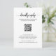 Einfache schwarz-weiße Hochzeitskarte mit den Worten, "freundlich antworten" in einem eleganten Skript mit Swashes. Unten sehen Sie Ihren QR-Code und Ihre Anweisungen. Auf der Rückseite ist dein LieblingsFoto. Diese moderne und minimalistische RSVP Karte koordiniert alle Stile der Hochzeitseinladung Suite.