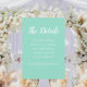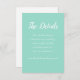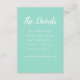 Die trendige Farbe des Meeres, die vertikale Hochzeitszimmerkarte mit weißem, stilisiertem Skript, das die Anleitung gibt, alle Details der Hochzeit des Paares auf ihrer Hochzeitswebseite zu finden. Passen Sie Ihre Gehäusekarte an, indem Sie den gewünschten Text bearbeiten und den Namen der Webseite durch Ihren eigenen ersetzen.