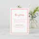 Einfache Hochzeitsempfehlung Gerahmt Coral White Begleitkarte