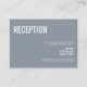 Einfache Dusty Blue Typografie Hochzeitsempfangskarte. Personalisieren Sie den benutzerdefinierten Text oben. Weitere Koordinationsgegenstände finden Sie in unserer Sammlung "Simple Navy and Dusty Blue Typografy Wedding". ***BITTE BEACHTEN SIE: ALLE WORTE, TEXT UND HINTERGRUNDFARBE SIND ERFORDERLICH. Sie können alle Wörter ändern und auch die Textfarbe ändern. Bei Elementen mit farbigem Hintergrund können Sie auch die Farbe so ändern, dass sie dem Text entspricht. Klicken Sie einfach auf "Weiter anpassen", um Änderungen vorzunehmen.