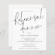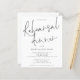 Eine günstige BUDGET-Alternative für eine kleinere Größe von 4,5 x 5,6 Zoll, die ein Gewicht von 110 lbs hat, die ähnlich dick ist wie eine Postkarte (sie ist jedoch nicht als Postkarte geeignet). BITTE BEACHTEN SIE, ES GIBT EINE Einladung pro Blatt in Schwarz und Weiß. Dieses moderne Design verfügt über ein elegantes, informelles Set-Skript für Probe Dinner und die Erholung der Typografie, die Sie leicht personalisieren können. Sie können Text- und Hintergrundfarben auf beiden Seiten auch ändern, wenn Sie dies wünschen, indem Sie die Option Weitere anpassen wählen.