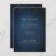 Imitate Gold Glitzer auf dunkelmarineblau Hintergrund und raffinierte Paar's Monogramm auf der Rückseite, einfach und elegant. Große Hochzeitskarte für moderne klassische Hochzeit und feierliche Hochzeit. Sehen Sie sich alle passenden Stücke in der Sammlung an.