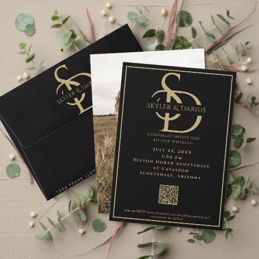 Simple Wedding Monogram - Black and GoldDesignt von Heather M