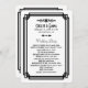 Diese Hochzeitsprogramme sind mit einer Schwarz-Weiß-Farbpalette, einem geometrischen Rahmen und anderen stilistischen Details inspiriert, die alle durch Art Deco und die rauschenden Zwanziger Jahre. Sie können die Textfelder des Beispiels nach Ihren Wünschen anpassen.